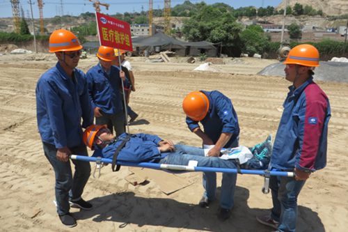 演练于14:00正式开始,在项目路基施工现场,模拟突发汛情场景,防汛巡查员在进行巡查过程中发现水位已超出警戒线,并有一名员工受伤。巡查员迅速报告突发情况,总指挥立即启动抗洪抢险应急救援预案,成立抢险组、安保组、医疗救护组、应急疏导组等专业处置小组,开展防洪应急抢险救援。险情就是命令,抢险组立即调运机械进行疏导水流,加固堤坝;医疗救护组快速带上担架、急救箱等立即赶往现场进行急救;其他各小组各司其职,迅速反应,做好抗洪抢险各项工作,一场上下联动、紧张有序的抗洪抢险应急演练顺利展开。演练结束后,总指挥对演练过程进行了认真点评,业主、监理、质监站等相关单位领导指出了不足,提出了建议。