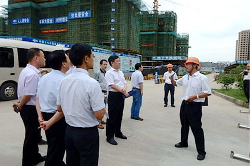 811,马鞍山市雨山区区委副书记、区长徐泽能,区委常委、常务副区长张卫国与雨山区建筑相关部门负责人一行,到中冶置业(安徽)公司承建的马鞍山市金福花园二期安置房工程调研指导工程建设及安置房分配工作。