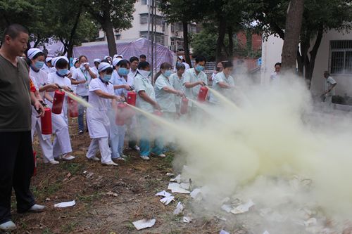 医院的义务消防队员为参加培训的人员重点讲授了灭火器和消火栓的使用、医院火灾的预防、火灾发生后如何自防自救常识、病房内防火、紧急逃生方法、应急疏散等消防知识。在义务消防队员指挥下,疏散人群有条不紊的进行紧急疏散,整个过程紧张、有序、安全、快速,不足三分钟时间,参训职工全部疏散至室外安全地带。疏散演练完毕后,消防队员进行灭火器、消火栓等灭火演示。大家踊跃参加了灭火器实际操作。