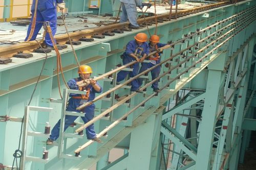 718,随着加料跨500T天车缓缓向南驶行,标志着由中国十七冶集团承建的宝钢湛江钢铁炼钢工程炼钢厂房内二步加料跨天车滑触线顺利安装完成。