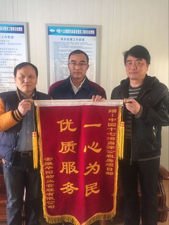 3月22日上午,当涂经济开发区廉租房物业公司有关负责人到中冶金禄置业公司赠送锦旗。金禄公司总经理李勇代表项目部接受了锦旗并致谢。