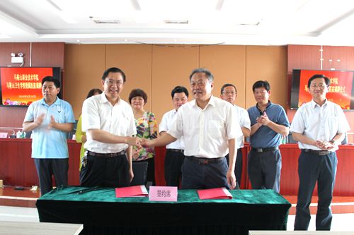 6月16日上午,十七冶医院与马鞍山职业技术学院正式建立附属医院协作关系。医院在“马鞍山十七冶医院”的牌子外,增挂“马鞍山职业技术学院暨马鞍山卫生学校附属医院”院名。马鞍山职业技术学院党委书记邵许、院长姚国成与十七冶医院院长王仲恺、党委书记陈斯菊共同揭牌。马鞍山职业技术学院副院长马小林及相关部门负责人,十七冶医院副院长高荣东、苏仕功出席了签约揭牌仪式。