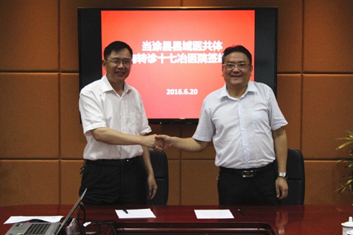 6月20日下午,十七冶医院与当涂县人民医院签署当涂县县域医共体定向转诊协议,深化马鞍山市县两级医疗机构医药卫生体制综合改革,建立基层首诊、上下联动、急慢分治、双向转诊的分级诊疗机制,方便群众就近就医。