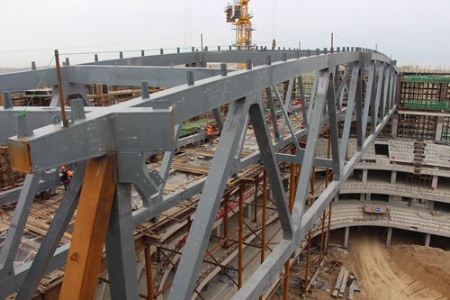 9月21日,中国十七冶集团甘肃分公司承建的甘肃省体育馆工程屋面钢桁架进行首次滑移,标志着体育馆项目屋面封闭施工开始,为实现项目主体封闭目标实现奠定了基础。