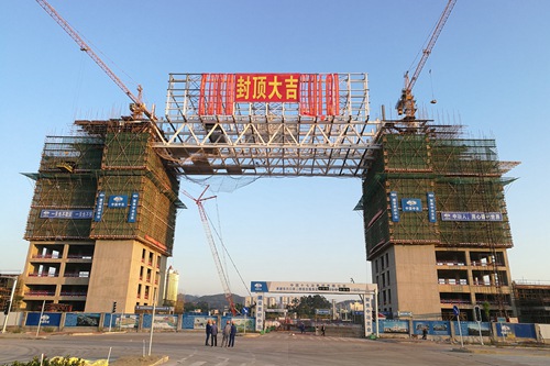 东兴口岸二桥综合服务区一期工程联检大楼封顶