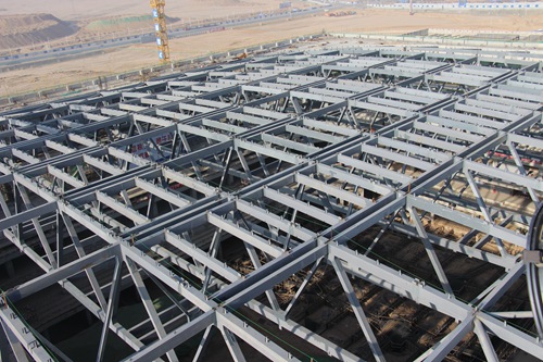 据悉,自首榀桁架开始滑移成功以来,由于桁架本身跨度大、高度高,单榀桁架重量达百吨,质量要求高,施工难度大。屋面桁架安装施工期间,空中焊花点点,地面人头攒动。项目部为了确保焊接UT合格率,选派具有多年类似工程焊接经验的焊接能手进行桁架的焊接,并由专业焊缝UT检测人员严格把关。通过焊前的仔细筛选、焊接过程中各道工序的严格把关,78米大跨度屋面桁架顺利通过了焊接关。在经过数个昼夜鏖战后,10榀屋面桁架成功滑移完成,此项节点的顺利完成为工程的整体推进增添了亮点。