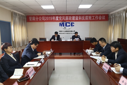 2月25日下午,中国十七冶集团管廊工程技术分公司党委召开2019年党风廉政建设和反腐败工作会议,传达十七冶2019年党风廉政建设和反腐败工作会议精神,总结2018年公司党风廉政建设和反腐败工作,部署2019年工作任务。公司领导班子成员、江西分公司党总支、各党支部书记、机关各部室负责人参加了会议。