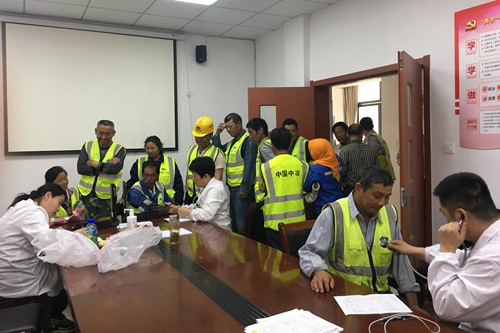 5月16日下午,为切实爱护和保障一线劳务人员的身体健康,使广大员工以饱满的精神状态、健康的体魄投入到工作中去,中国十七冶集团马鞍山博望管廊项目部积极联系十七冶医院到项目上为施工一线的劳务人员进行内科常规检查。
