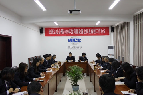 1月31日上午,达成公司召开2019年党风廉政建设和反腐败工作会议,传达十七冶2019年党风廉政建设和反腐败工作会议精神,总结2018年达成公司党风廉政建设和反腐败工作,部署2019年工作任务。公司领导班子成员和全体员工参加会议。