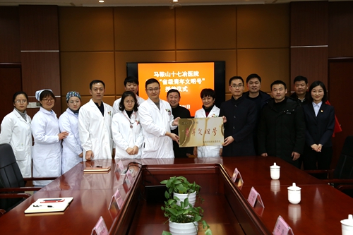 1月31日下午,共青团马鞍山市委副书记马鑫带队来十七冶医院为“安徽省青年文明号”荣誉获得集体——儿科授牌。十七冶医院党委书记陈斯菊、院长尚昌凤,十七冶团委书记李静,医院纪委书记高荣东、副院长贾先慧等参加授牌仪式。