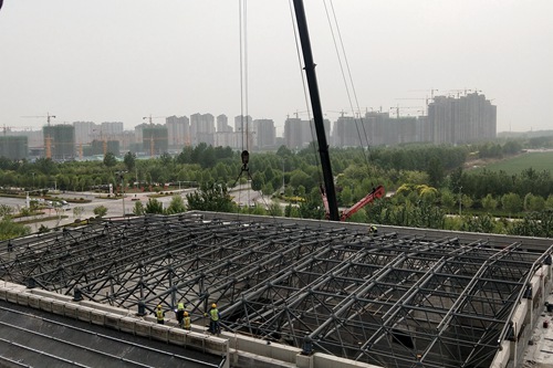 4月30日,中国十七冶集团承建的梁山县解决城镇大班额项目一中综合楼工程顺利完成网架吊装。