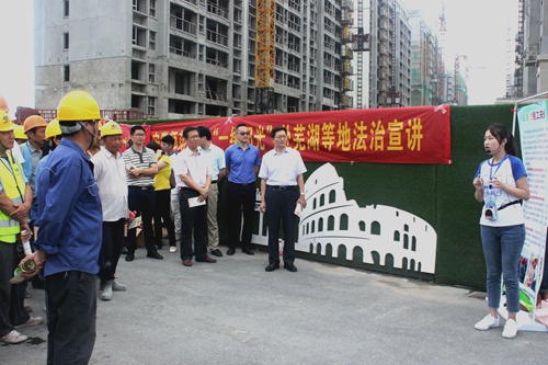 7月10日,十七冶城建分公司芜湖汀海壹品项目部联合安徽师范大学法学院组织开展了“江淮普法行”活动,旨在把关爱农民工、维护农民工合法权益的法律知识送到工友身边。