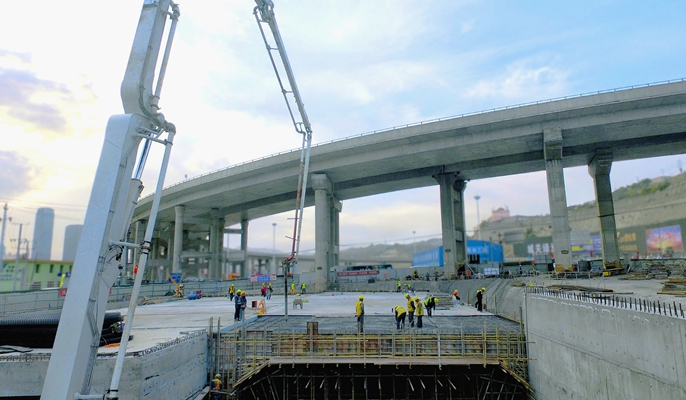 面对挑战,项目部迎难而上,严格把控施工各环节,通过倒排工期,不断优化施工组织,细化材料采购计划、资金计划,加大各项资源投入。从9月3日第一节底板浇筑,到最后一节顶板混凝土浇筑完成,仅历时47天,完成钢筋安装约766吨,C40混凝土浇筑约4162立方米,比业主下达的工期任务提前12天完成框架桥主体施工任务,受到社会各界赞誉。