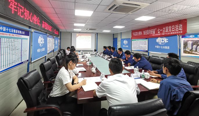 为迎接建党99周年,6月30日上午,中国十七冶集团南京大唐置安智能科技大厦项目党支部联合宁浦房地产开发有限责任公司机关党支部共同开展“牢记初心使命,奋进复兴征程”主题党日活动。