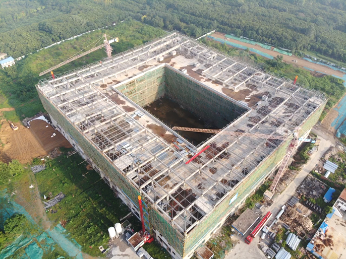 鄢陵县市民中心项目位于鄢陵县花都大道与锦绣路交叉口西北角,项目包括博物馆、科技馆、市民中心和文化艺术中心,项目整体呈“回”字形结构。项目占地面积约160亩,总建筑面积约4.78万平方米。项目基础形式为筏板加下柱墩,主体结构为框架结构,屋面为网架结构,共四层,建筑高度为34.542米(含屋面网架)。在项目建设过程中,项目部全体员工坚持“一天也不耽误、一天也不懈怠”的企业精神,积极践行“24小时工作法”,抢工期、抓质量、保安全,确保项目安全高效优质履约。