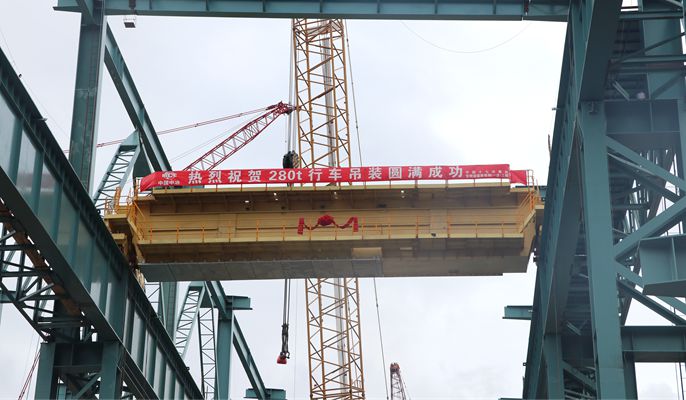 本次吊装的脱磷预处理炉加料跨的280t行车是一台利旧设备。2003年,中国十七冶集团在上海将它安装就位,开启了它在上海不锈钢一厂为期十五年的服役征程。2019年,中国十七冶集团在上海又将其保护性拆除,经返厂维修后运抵现场。如今,该行车在宝钢德盛项目的吊装完成,成功开启了二次服务的新征程,为实现12月28日碳钢转炉就位这一重大节点提供了有力保障。近二十年来,它不仅为宝钢集团的发展贡献了力量,也是中国十七冶与宝钢集团深厚渊源的见证人。