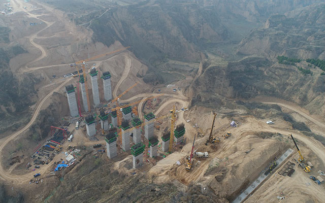 三门峡崤函大道项目火烧羊沟大桥全长368米,桥梁内最大纵坡为-0.58%。桥梁上部采用40米先简支后连续预应力T梁,全桥共设置三联,分别为3*40+3*40+3*40米,下部结构桥墩采用圆柱式桥墩、单排桩基础,方柱墩、空心墩、群桩基础,桥台均采用桩式桥台。设计桩基186根,均为摩擦桩,合计桩长11342米,全部桩基施工历时296天,共使用混凝土约23703立方米。
