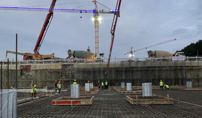 景德镇艺术职业大学C组团孵化产业楼人防地下室首块筏板浇筑
