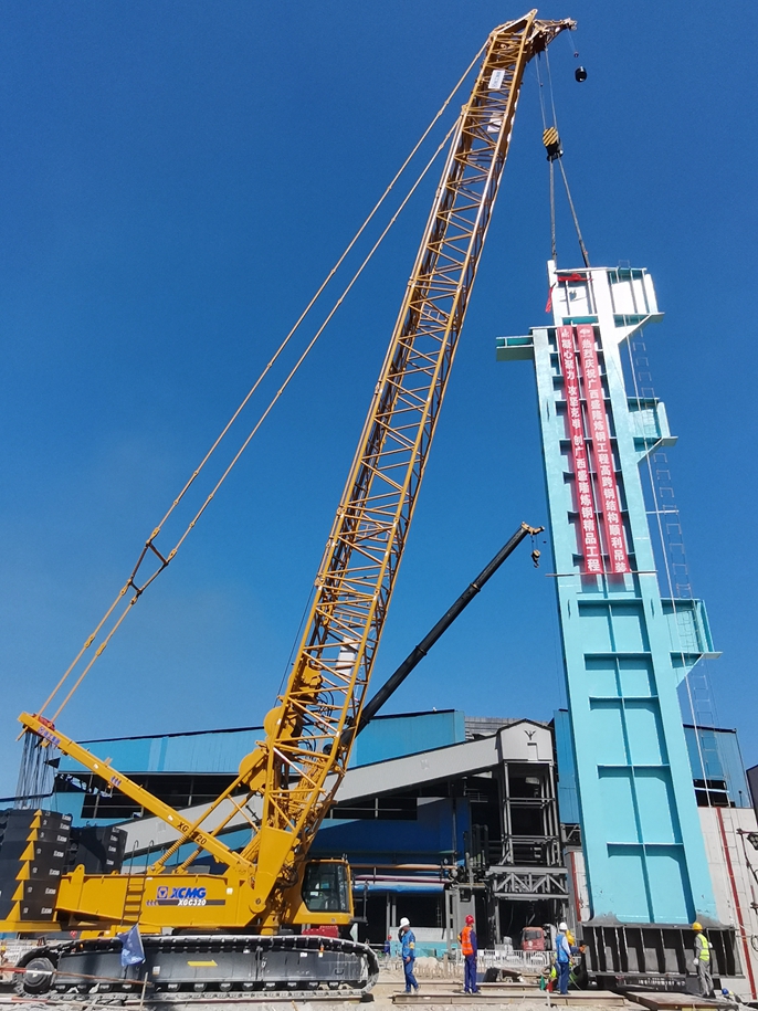 6月6日上午,中国十七冶集团冶金分公司承建的广西盛隆炼钢工程转炉高跨钢结构吊装。伴随着 “起吊令”响起,转炉高跨吊装主吊车320T履带吊开动,随着转炉跨E列1/5轴线高跨钢柱缓缓就位,拉开了广西盛隆炼钢高跨钢结构安装帷幕。