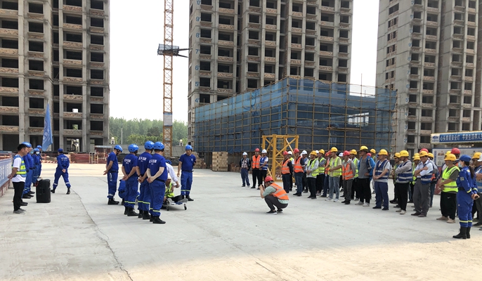 为贯彻落实“安全生产月”活动精神,提高员工应急反应综合素质,增强应急救援能力。6月11日,中国十七冶集团城建分公司灵璧金色名郡项目部邀请灵璧蓝天救援队共同开展“安全生产月”应急救援演练活动。