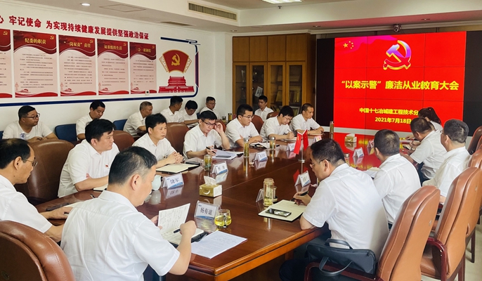 大会宣贯了十七冶纪委关于开展“以案示警”廉洁从业教育两年行动计划。会上,城建分公司纪委按照集团党委的部署要求,作为党史学习教育中的深化和延伸,以“党的纪律建设史”为主题组织大家集中观看了《一百堂党史课丨雷打的石头 铁打的纪律》专题教育片,并通报有关典型案例。