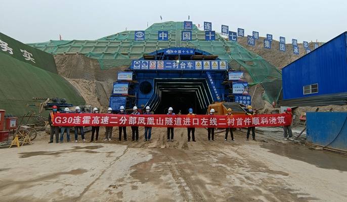 4月11日,中国十七冶集团公路工程技术分公司承建的G30连霍高速兰州清忠段项目控制性工程凤凰山隧道进口左线首件二衬混凝土顺利浇筑。