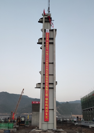 4月25日上午,由中国十七冶集团冶金工程技术分公司承建的云南玉昆项目施工现场,首根钢柱在起重机的牵引下徐徐升起并精准进入到杯口指定位置,第一根钢柱顺利吊装完成,标志着项目钢结构安装正式拉开序幕。