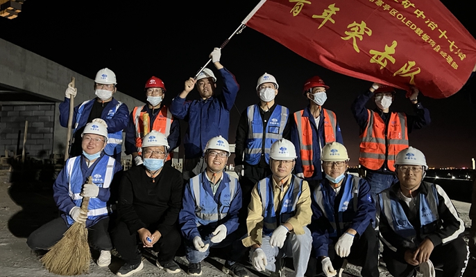 OLED载板项目位于山东省潍坊市寒亭区,建成后每年可产载板玻璃432万片,成为国内单体最大的OLED载板玻璃生产基地。本项目工期紧,任务重,此次连夜抢工,充分展现了十七冶员工的精神面貌,青年突击队“平常时候看得出来、关键时刻站得出来、危急关头豁得出来”的行为受到了业主单位的高度赞扬和认可。