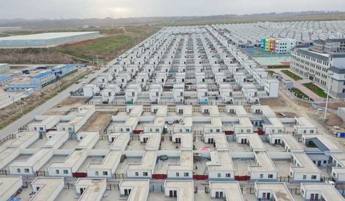 兰州新区承接灾后重建搬迁安置农村住房及配套设施项目总建筑面积约40.6万平方米,建设用地约1839.6亩,项目包括3232户农宅,并配备道路管网工程、社区服务配套住房、医疗卫生服务站、养老中心、幼儿园、九年一贯制学校等内容。项目作为承接甘肃省地质灾害避险搬迁安置群众,是甘肃省落实乡村振兴战略的一项重点民生工程。截止目前,项目已竣工交付3027套农宅安置移民搬迁群众8787名,九年一贯制学校、幼儿园已投入使用。社区服务配套住房、医疗卫生服务站、养老中心已完成主体建设正进行装饰装修。