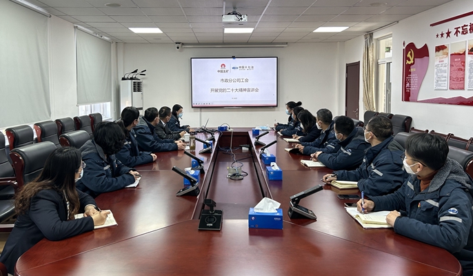 1月16日,中国十七冶市政分公司工会开展党的二十大精神宣讲会,分公司党员领导干部、机关全体职工参加宣讲会。