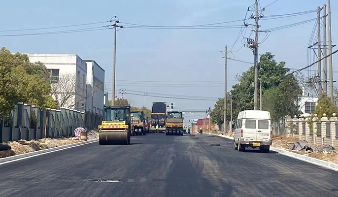 马鞍山博望产业新城崂山路至小溪港段沥青下面层摊铺完成