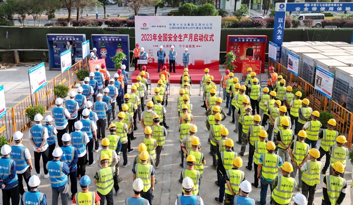 在全国第二十二个“安全生产月”来临之际,6月1日上午,中国十七冶江西分公司在科晨研发中心项目举行2023年“安全生产月”启动仪式。江西分公司经理孙心鞍、管廊分公司副经理施光涛、江西分公司副经理兼安全总监王磊、项目部全体管理人员及作业人员代表参加仪式。