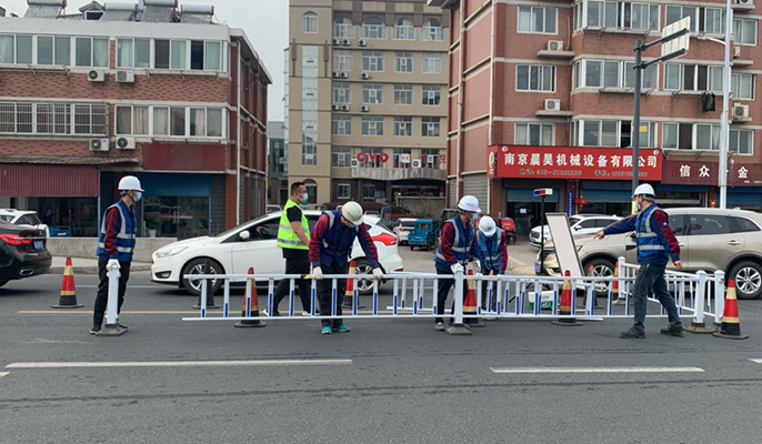 直面防疫一线,每个人的内心都五味杂陈,有对家人身心健康的担心,还有面对众多小区群众恐慌疑问带来的踌躇。志愿者队伍中的老同志们以长辈的身份安抚年轻同志,指导现场施工人员高效严谨完成隔离带搭设作业,引导现场施工安全秩序。年轻员工们也不甘示弱,与政府、社区保持沟通,不仅在现场积极巡查,查漏补缺,还当起了社区居民的配送员,为社区大爷大妈买生活用品。现场的每个人都扛起了自己的一份责任,以最快速度完成对封控区及管控区的封闭作业,共同创造十七冶速度。历经11个小时,项目团队完成了平山新村、师苑新村、鹊桥小区、大北庄、八一大院、八三大院、双岗新村等12个小区的封闭作业,搭设隔离带1500多米,完美的移交给第二天的防疫工作人员。