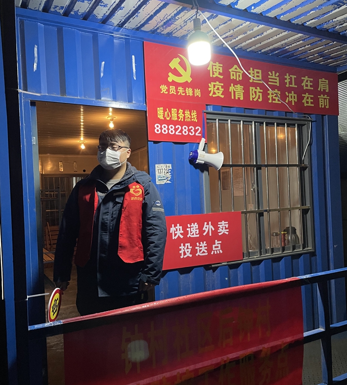 志愿者团队闻令而动,到岗后迅速进入工作状态,参与体温监测、通行证检测、卡点值守等各项疫情防控工作,每天16小时2班倒,轮班轮岗支援社区防疫工作。志愿者们在做好小区大门防守工作的同时,向出入小区居民宣传防疫相关知识,测量体温,引导居民自觉扫码登记,办理居民出入通行证。对未接种加强针疫苗的居民详细登记,动员其尽早接种疫苗,确保科学防疫措施落实到位。夜晚寒风凛冽,晚班执勤人员坚守到夜里11点,大家依旧毫无怨言。在疫情防控工作中,志愿者团队不惧寒冷,各司其职、各尽其责,坚守在执勤岗位,与“大白”共同战一线,为社区疫情防控筑牢防线。