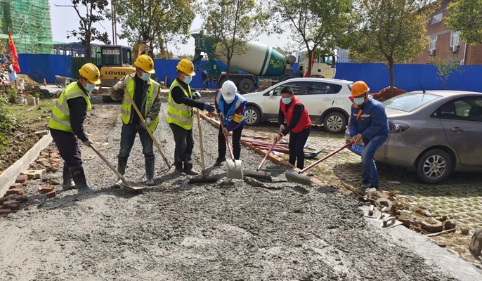 合肥市瑶海区枞阳路与团结路交叉口,临近项目西侧的仙居苑西村小区内,部分场地因绿化退化成为泥土路面。考虑到小区内住有众多老人,雨天出行非常不便,极易发生安全隐患。发现这一情况后,项目党支部上门搜集民情民意,深度了解、全面梳理了红光街道仙居苑西村小区地势低洼、地面堆积生活垃圾等问题,在社区党支部的协助下广泛征求小区居民意见,绘制规划场地图纸,科学布置,并联合合肥宝地产城发展有限公司党支部、社区党支部和物业公司全程参与进行场地硬化施工,建成小区道路,便捷了小区居民的出入通行,得到了社会上的高度认可。