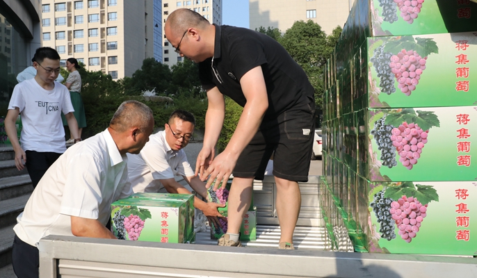7月27日,中国十七冶集团工会发放助力“乡村振兴”大礼包,将购买的十七冶定点帮扶乡村振兴的安徽省定远县秦集村特色农产品葡萄发放至广大职工手中,进一步助力秦集村壮大集体经济,同时也为公司职工送去了一份“清凉”。