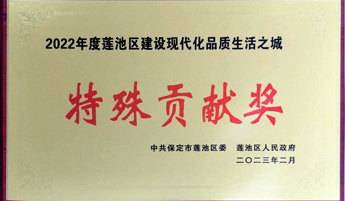 获评“2022年度莲池区建设现代化品质生活之城特殊贡献奖”